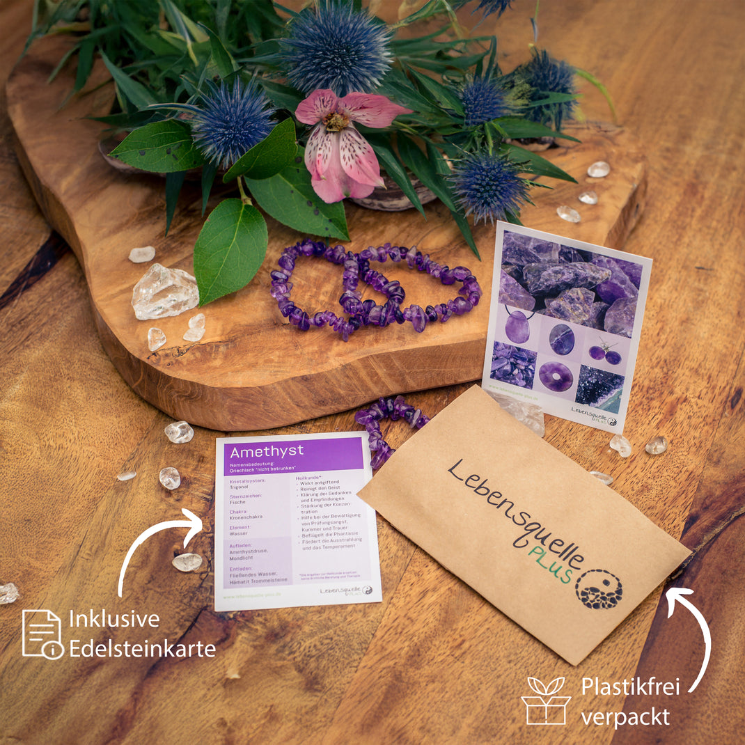 - Carte de pierre précieuse incluse : Une carte de pierre précieuse conçue avec amour, contenant des informations sur l'améthyste, fait de ce bijou quelque chose de spécial et est idéal comme cadeau.