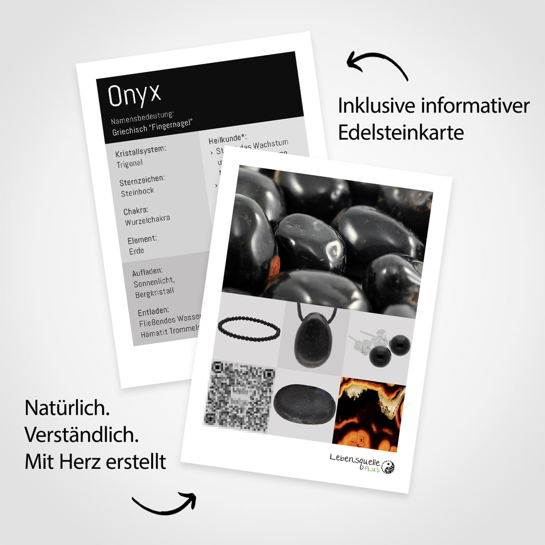 - Carte de pierre précieuse incluse : Une carte de pierre précieuse conçue avec amour fournit des informations intéressantes sur les signes du zodiaque et les chakras associés à l'onyx.