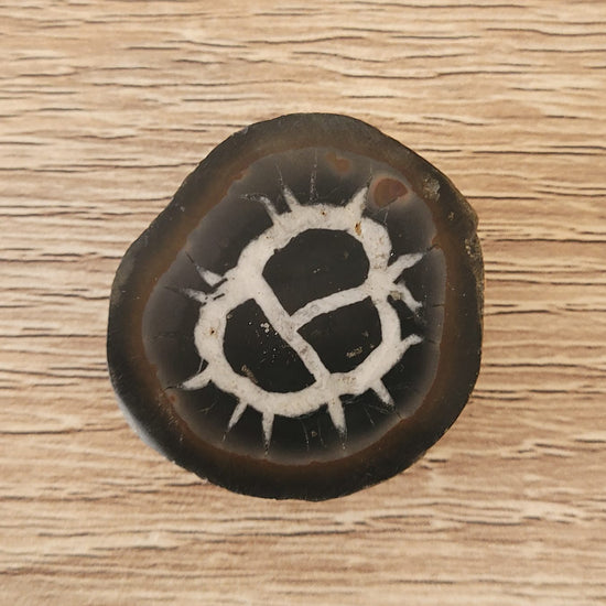 Diese polierte Septarie besticht durch ihre einzigartige Maserung und die warmen, erdigen Farben, die typisch für diesen besonderen Stein sind. Jede Septarie erzählt ihre ganz eigene Geschichte aus Millionen von Jahren und bringt eine beruhigende, stabilisierende Energie mit sich. Ein natürliches Kunstwerk, das sowohl dekorativ als auch energetisch wertvoll ist.