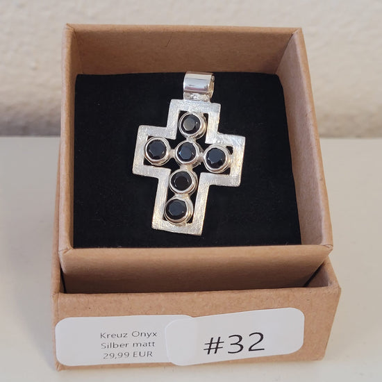 #32 Onyx Kreuz Silber/matt Kettenanhänger | Instagram Live