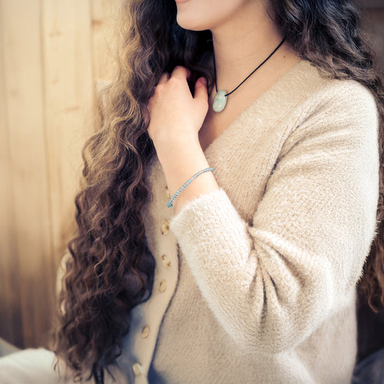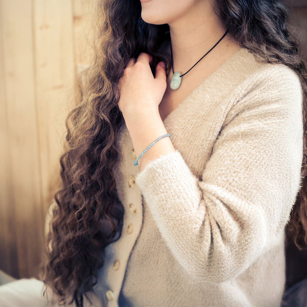 Mini Kugelarmband aus Aquamarin: Dieses stilvolle Armband besteht aus 4 mm großen, hellblauen Aquamarin-Perlen und verleiht Ihrem Outfit eine sanfte, frische Note.