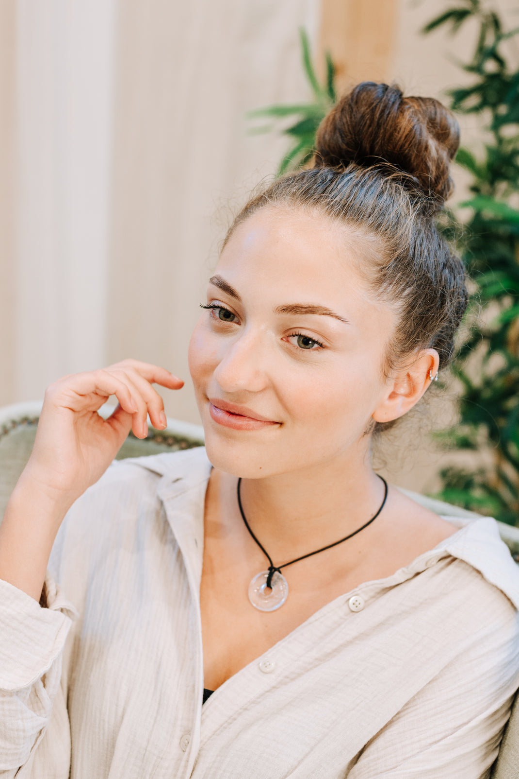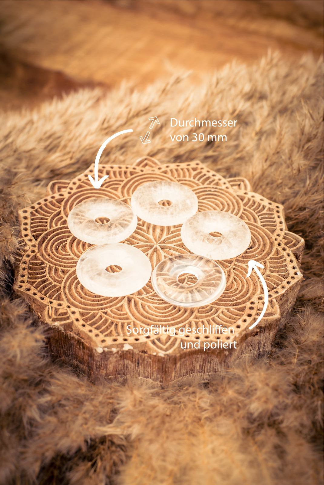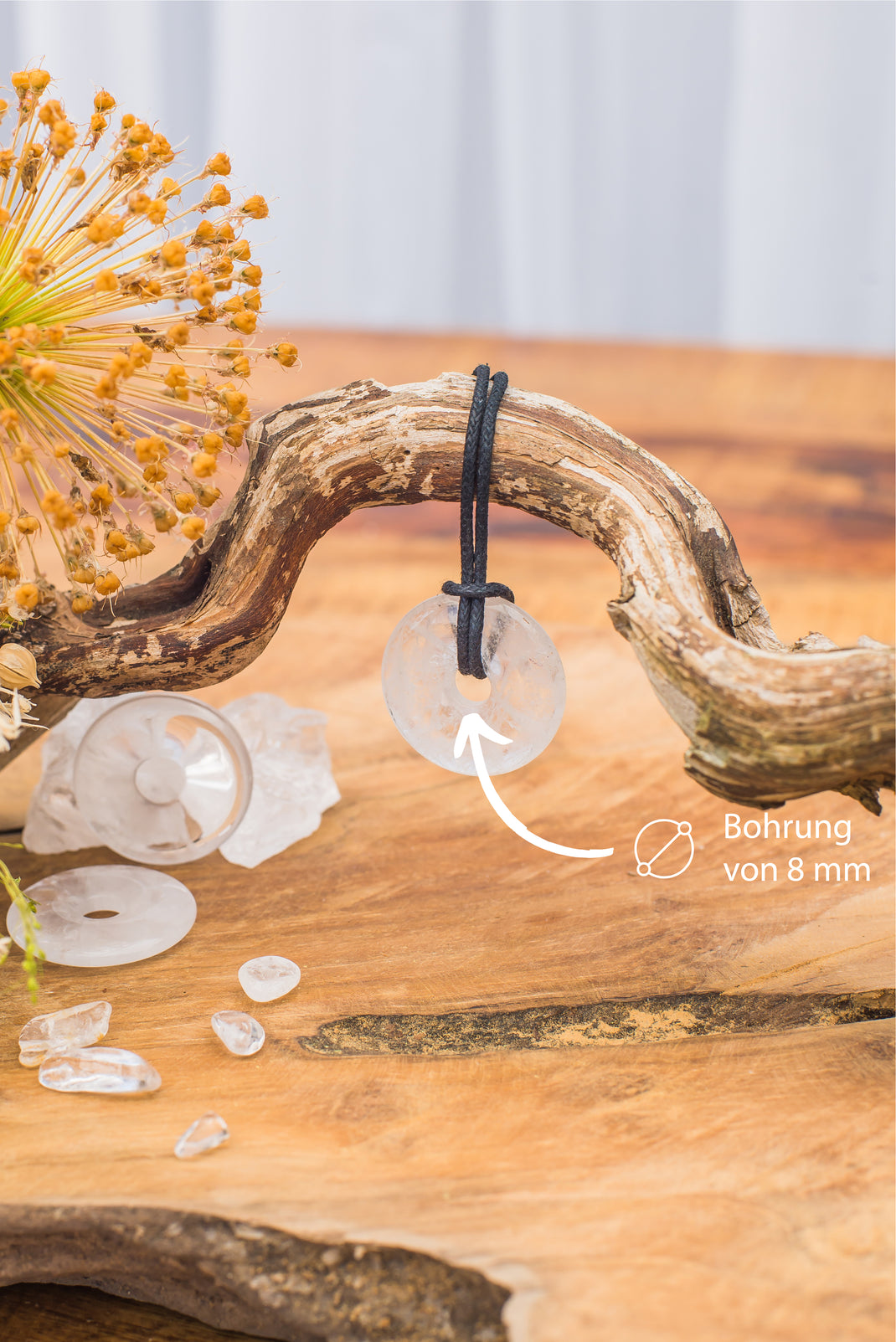 Bergkristall Donut | 30 mm Anhänger + Baumwollband