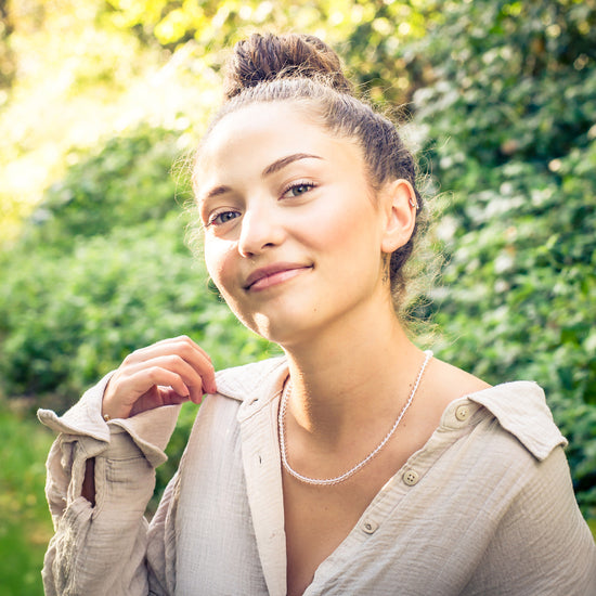 - Länge und Perlengröße: Die Kette hat eine Gesamtlänge von 45 cm mit einer Perlengröße von 4 mm.