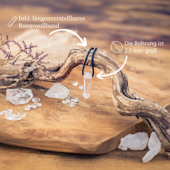 - Set Angebot aus einer Bergkristall Natur-Spitze inklusive einem anschmiegsamen Band zum sofortigen Einsatz und für einen angenehmen Tragekomfort. Dadurch eignet sich das Set auch als ideales Geschenk für einen lieben Menschen.
