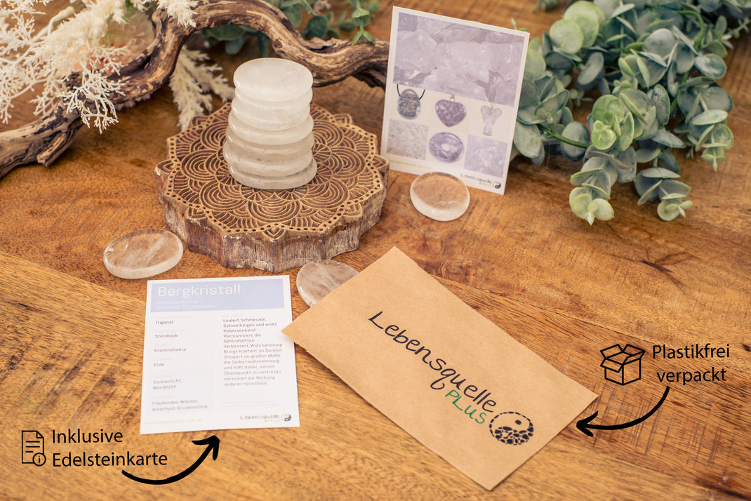 - Echtes Naturprodukt: Jeder Bergkristall-Scheibenstein ist authentisch und zeigt die einzigartigen Charakteristika dieses Edelsteins.