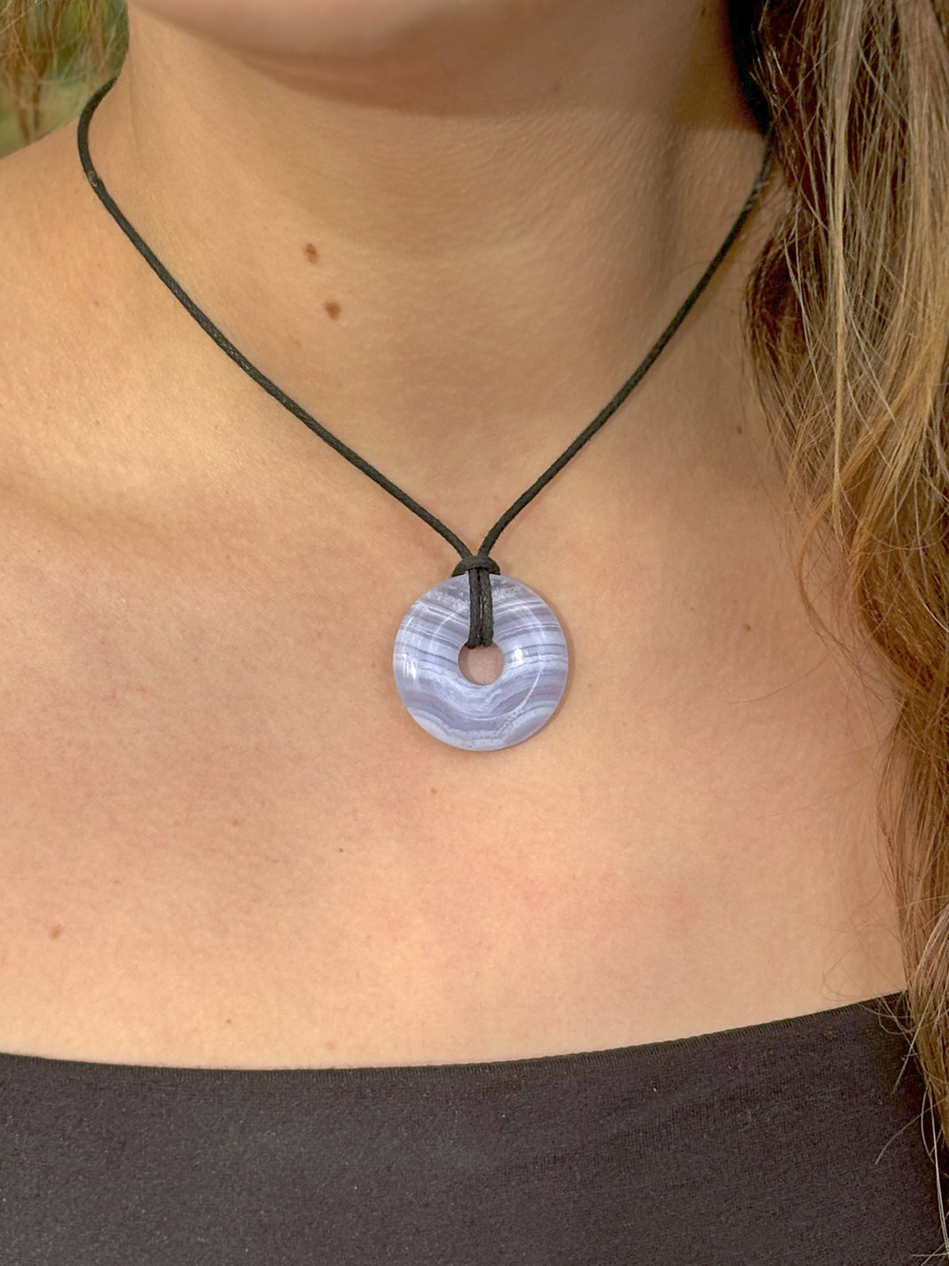 Chalcedon, blau Donut | 30 mm Anhänger + Baumwollband