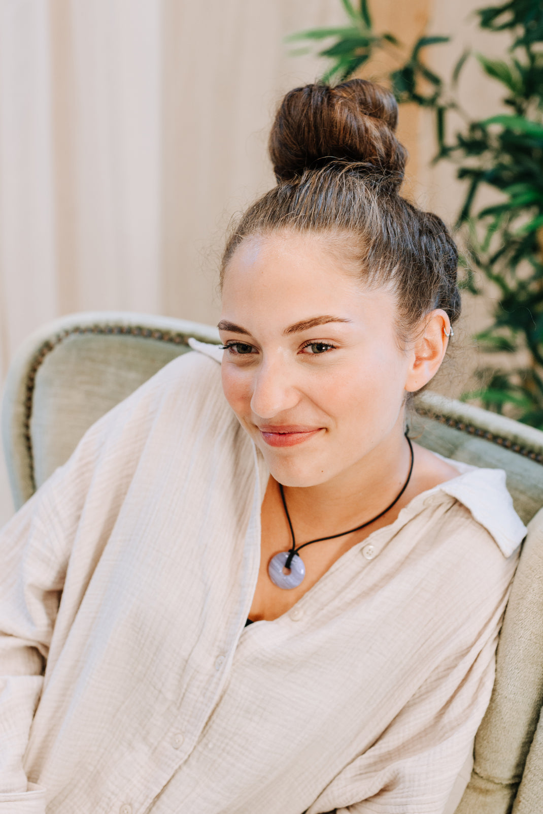 Hochwertiges Baumwollband mit einer Länge von 100 cm, das flexibel angepasst werden kann und sowohl als Kette als auch als Armband getragen werden kann.