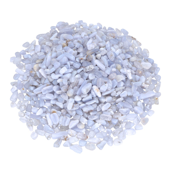 - Echte Mini-Trommelsteine aus blauem Chalcedon – Natürliche Edelstein-Chips in sanftem Hellblau mit zarten, wolkigen Strukturen – ideal für Dekoration, DIY-Projekte und energetische Anwendungen.