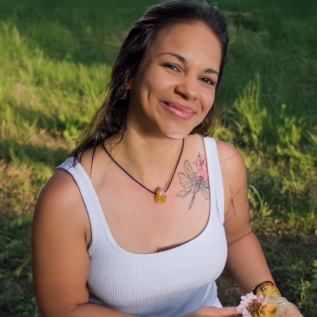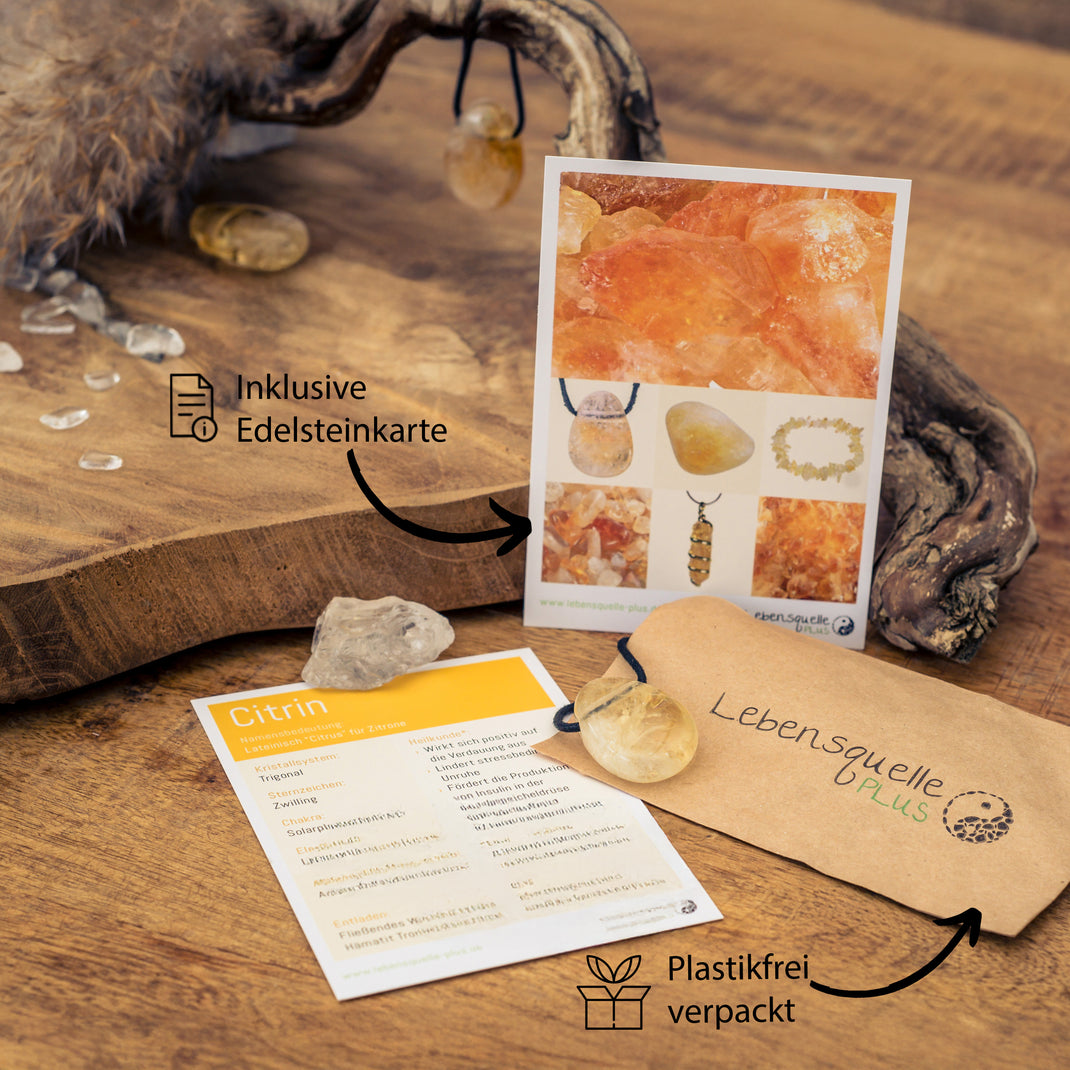 Set-Angebot: Citrin-Anhänger inklusive weichem Baumwollband – sofort tragbar, angenehm zu tragen und ideal als Geschenk.