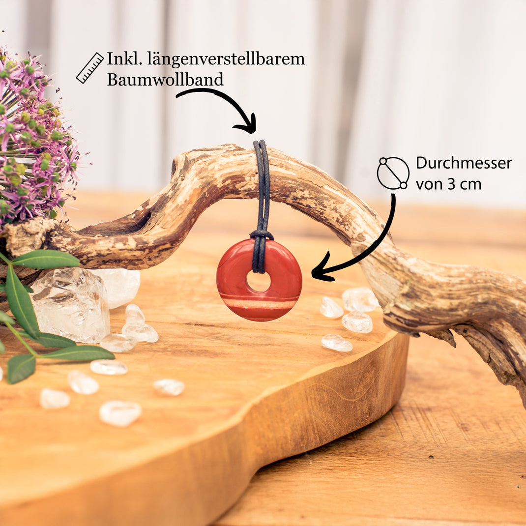 Jaspis, rot Donut | 30 mm Anhänger + Baumwollband