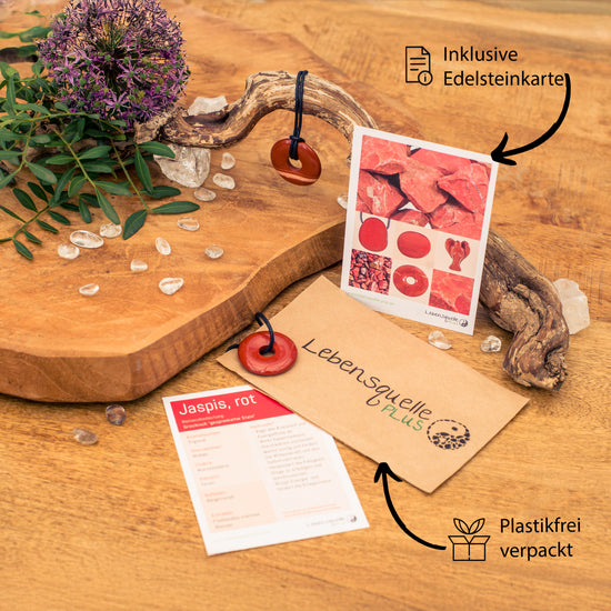 - Inklusive Edelsteinkarte Eine liebevoll gestaltete Edelsteinkarte bietet wertvolle Informationen über die Bedeutung und Symbolik des roten Jaspis und rundet das Set ideal ab.