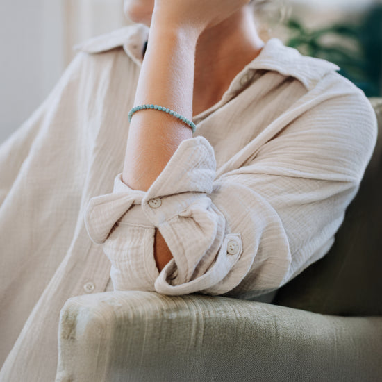 Vielseitig kombinierbar: Der klare, blaue Farbton des Larimars lässt sich ideal allein tragen oder mit anderen Armbändern kombinieren, um einen einzigartigen Look zu kreieren.