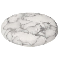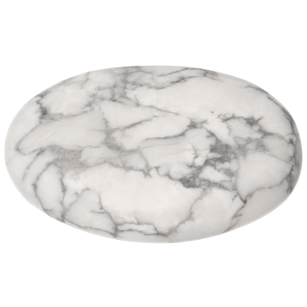 - Sanfte Farbgebung: Der Magnesit-Scheibenstein zeichnet sich durch seine milchig-weißen Töne mit feinen, grauen Adern aus, die ihm eine beruhigende und natürliche Ausstrahlung verleihen.