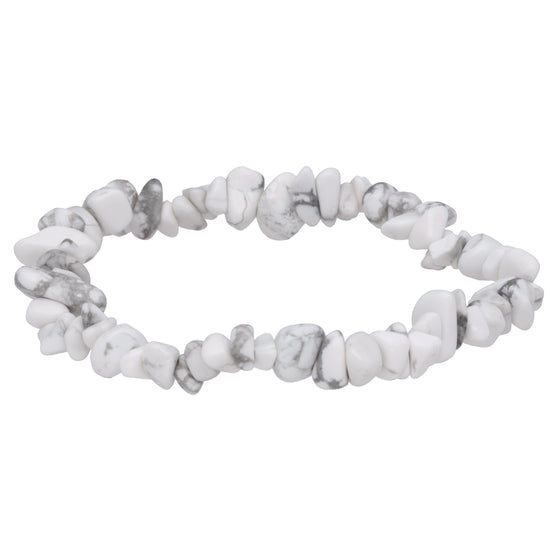 - Splitterarmband aus Magnesit-Trommelsteinchen in harmonischen Weiß- und Grautönen, die eine natürliche Eleganz ausstrahlen.