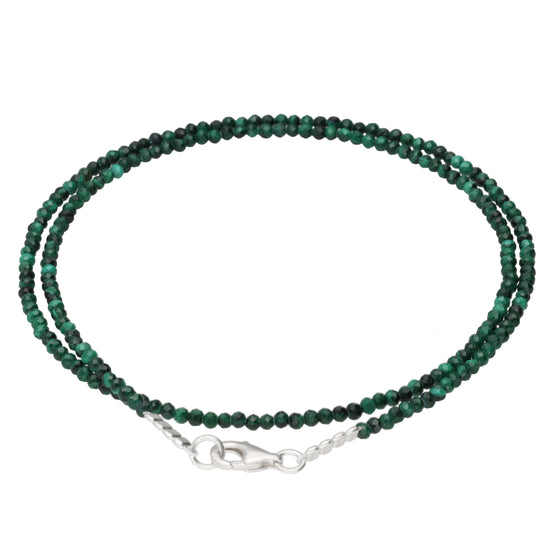 Malachit 2 mm Perlenkette facettiert | 45 cm + Silberverschluss