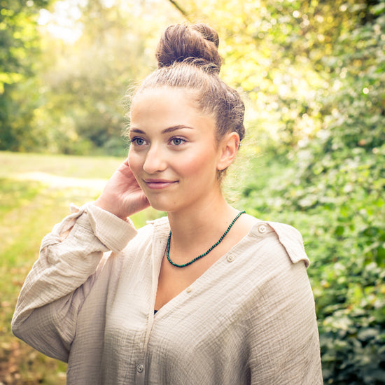 - Elegante Edelsteinkette: Gefertigt aus 100% natürlichem Malachit, jeder Stein ist einzigartig, was jedes Schmuckstück zum Unikat macht.