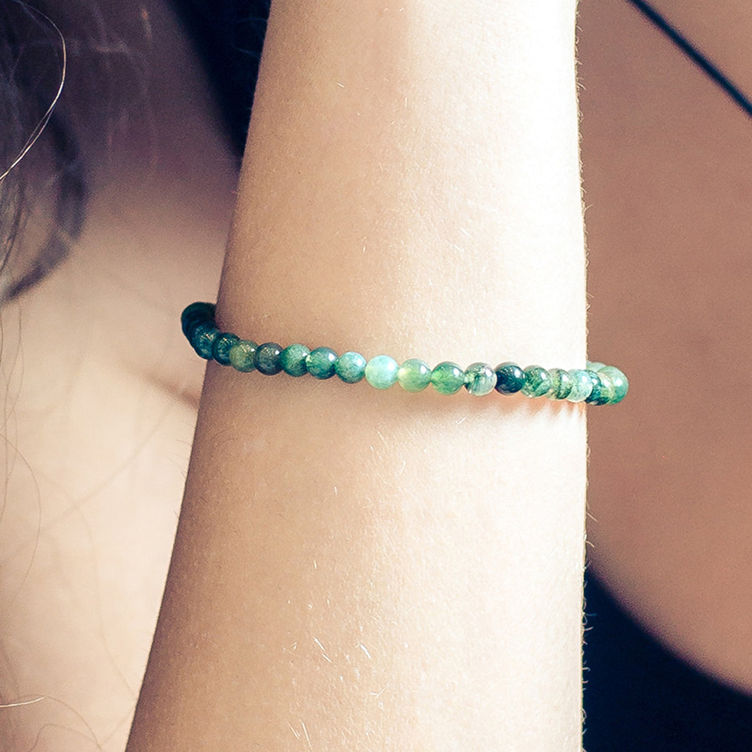 - Mini-Kugelarmband aus Moosachat: Dieses zarte Armband besteht aus 40-41 Moosachat-Perlen mit einer Größe von 4 mm, die dem Träger eine natürliche und erdende Ausstrahlung verleihen.