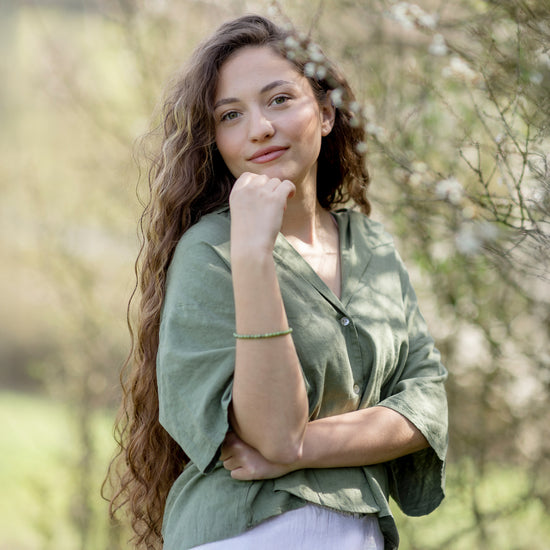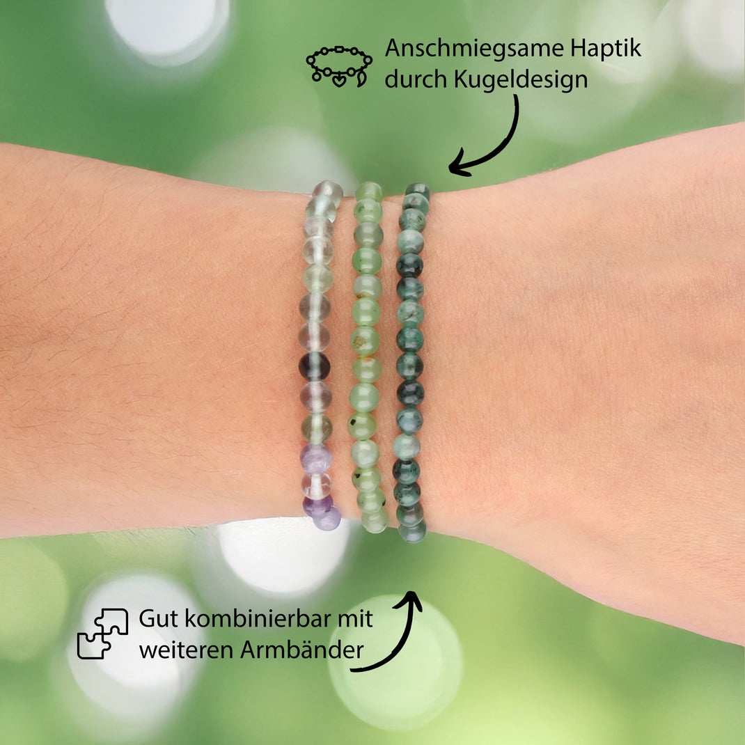 Mini Kugelarmband aus Nephrit (Jade): Die sanften Grüntöne der Nephrit-Perlen verleihen dem Armband eine natürliche und beruhigende Ausstrahlung, die perfekt die Schönheit der Jade einfängt.