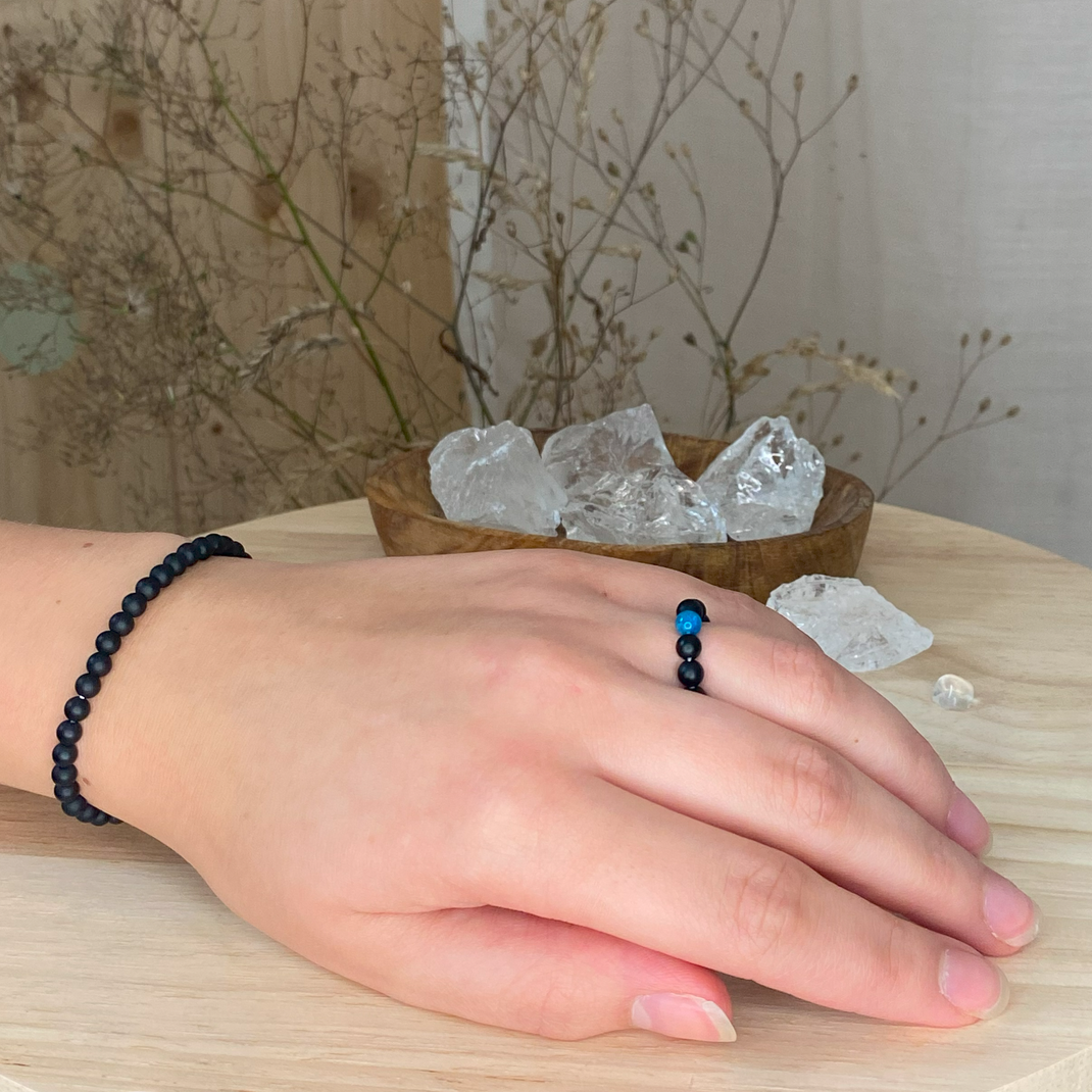 - Matte Onyxperlen für Schutz und Stabilität: Der Ring besteht aus matten Onyxperlen, die für ihre schützenden und erdenden Eigenschaften bekannt sind und innere Stärke fördern.