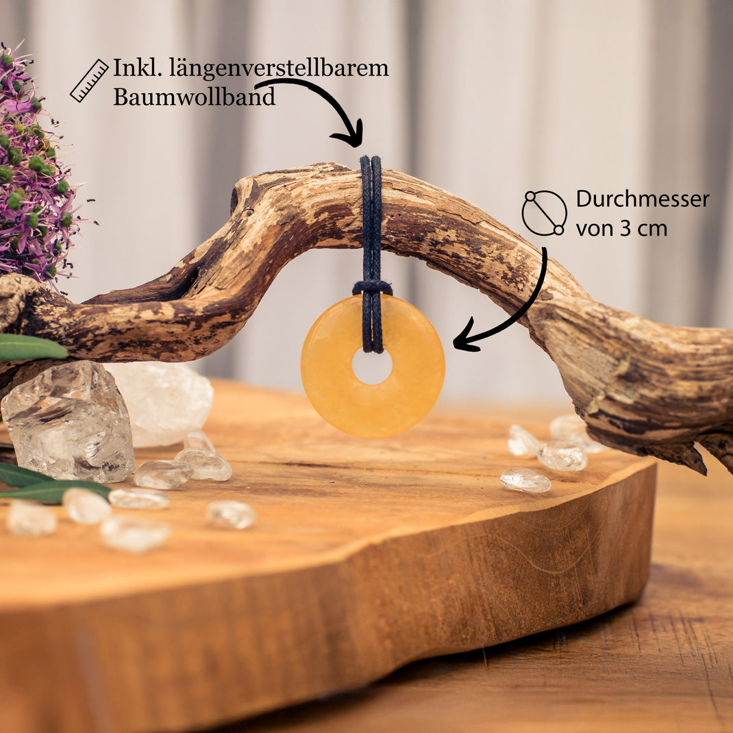 Orangencalcit (Aragonit) Donut | 30 mm Anhänger + Baumwollband