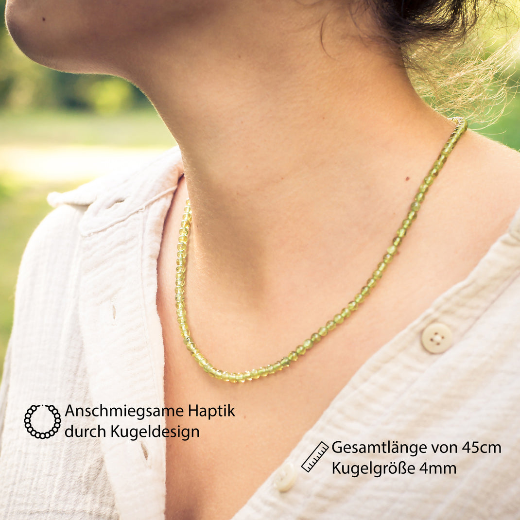 Peridot Kugelkette | Ø 4mm mit 925er Silber Verschluss | 45cm