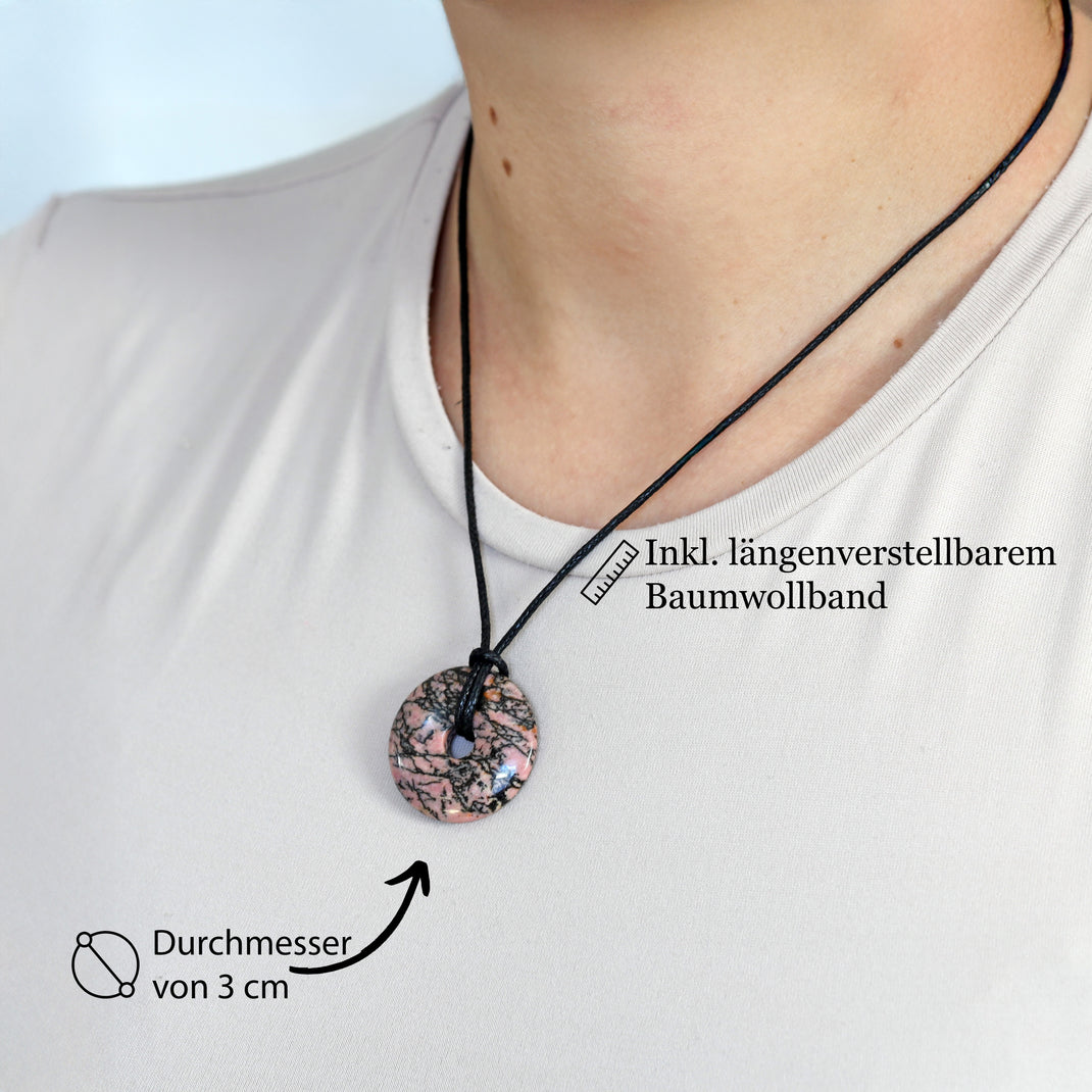 Rhodonit Donut | 30 mm Anhänger + Baumwollband