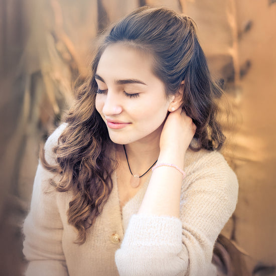 Sanfte Eleganz: Die zarten Rosatöne des Rosenquarzes machen dieses Armband zu einem wunderschönen Accessoire, das Liebe und Harmonie symbolisiert.