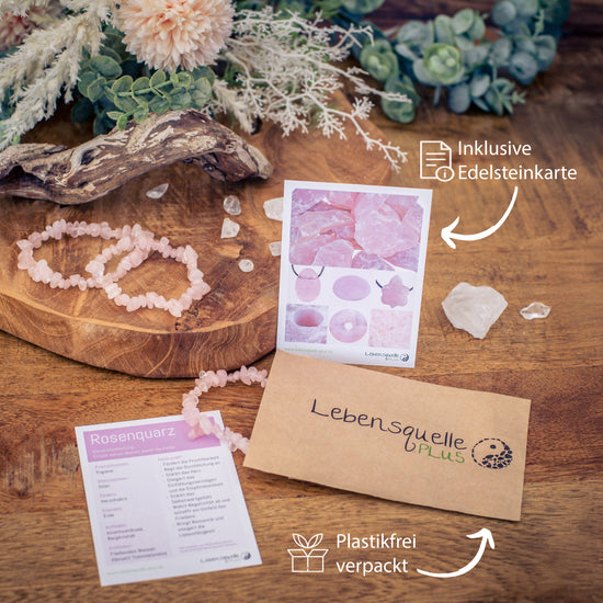 - Inklusive einer Edelsteinkarte: Eine liebevoll gestaltete Edelsteinkarte zum Rosenquarz mit allen nützlichen Informationen zum Sternzeichen, Chakra und der nachgesagten Heilwirkungen ist ebenfalls enthalten.