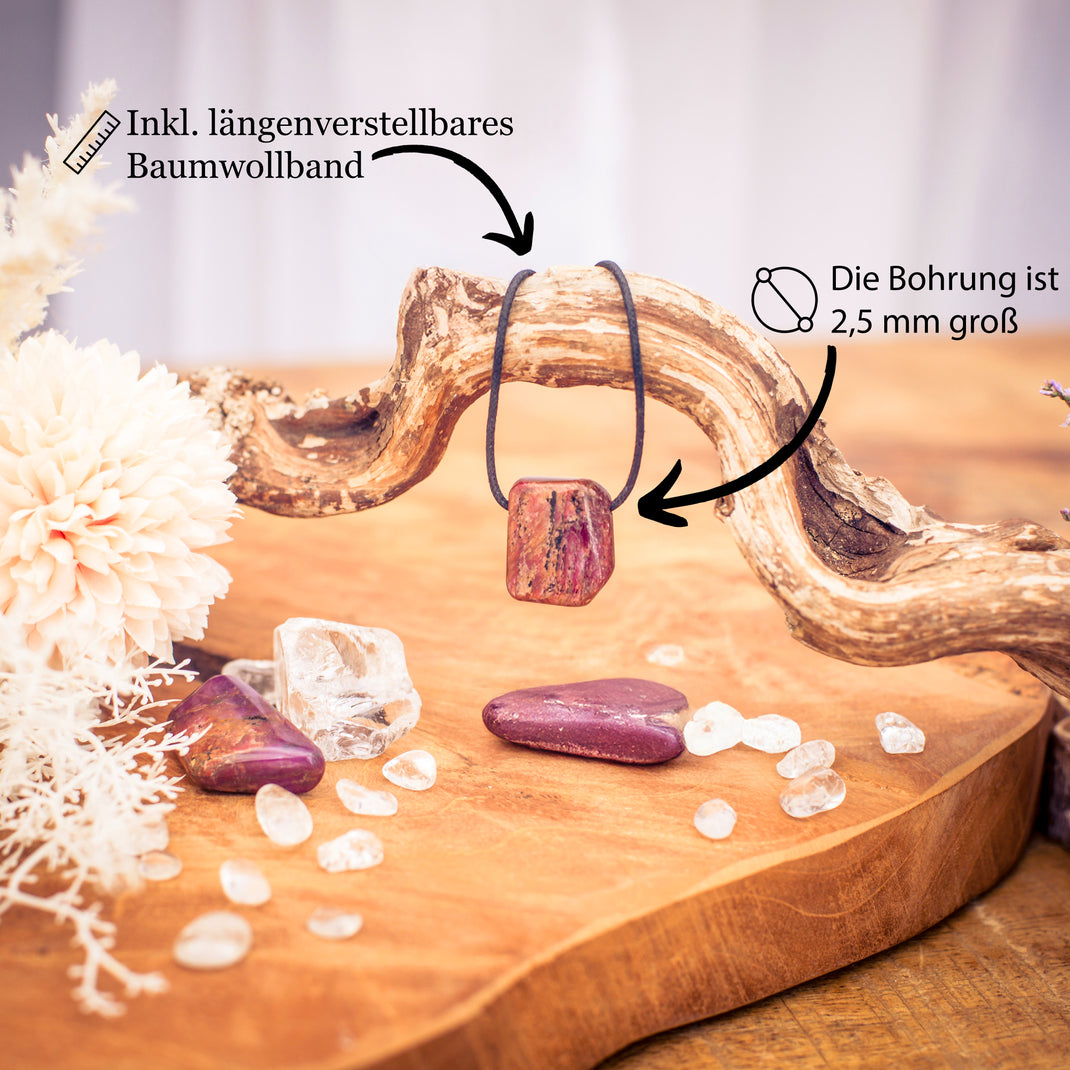- Einzigartiges Naturprodukt. Bei diesem Rubin handelt es sich um ein echtes Naturprodukt - 100% Edelstein. So ist jeder Anhänger ein Unikat, das es so nur einmal gibt. Die Größe des Steines beträgt etwa 3 cm und die Breite ca. 2 cm. Die Bohrung ist 2,5 mm groß und eignet sich für gängige Baumwoll- und Lederbänder.