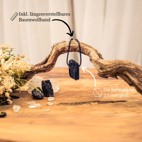 Komplettes Set: Enthält einen echten schwarzen Turmalin-Rohstein und ein anschmiegsames Baumwollband – sofort tragbar und ideal als Geschenk für einen lieben Menschen.