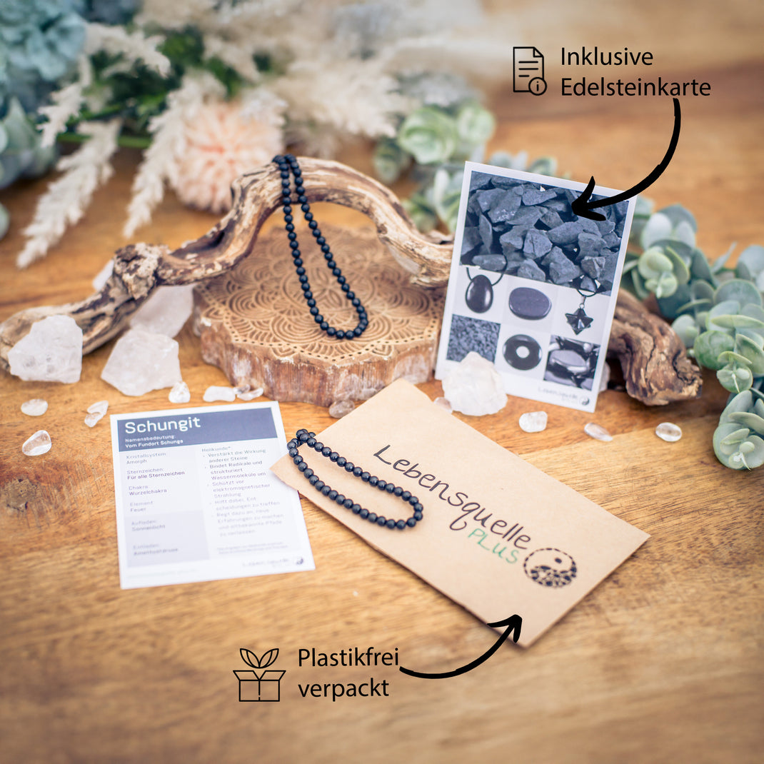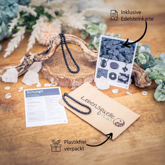 - Elegante Edelsteinkette: Gefertigt aus 100% natürlichem Schungit, jeder Stein ist einzigartig, was jedes Schmuckstück zum Unikat macht.