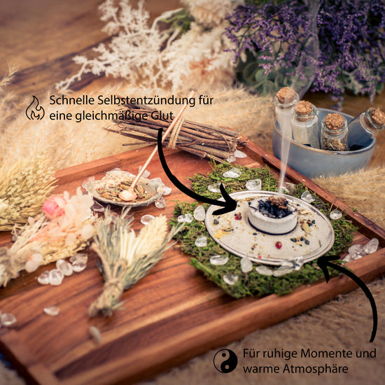 Selbstzündend & schnell einsatzbereit: Die Kohletabletten entzünden sich nach dem Anzünden selbstständig und entwickeln rasch eine gleichmäßige Glut für ein müheloses Räuchererlebnis.