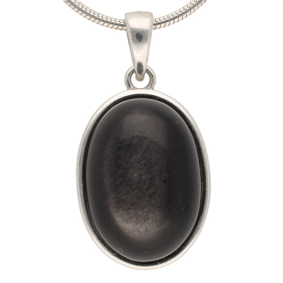 Silberobsidian Anhänger (oval) in Silber gefasst