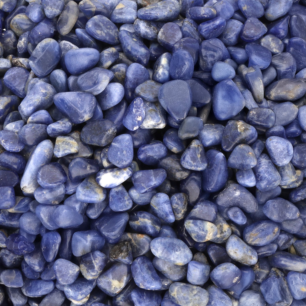 - Echte Mini-Trommelsteine aus Sodalith – Edle Edelstein-Chips in typischem Dunkelblau mit weißen Adern – ideal für Dekoration, DIY-Projekte und spirituelle Anwendungen.