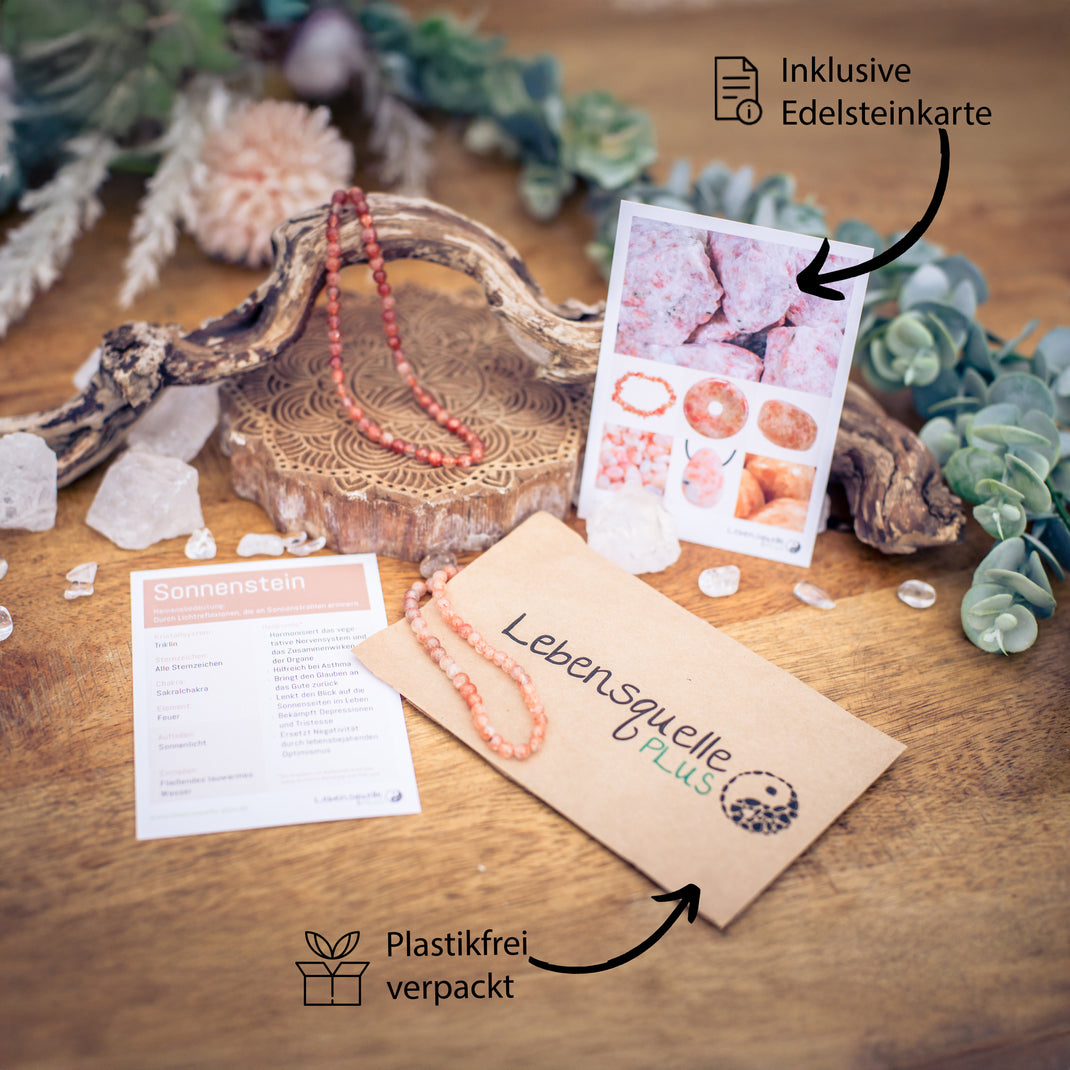 - Elegante Edelsteinkette: Gefertigt aus 100% natürlichem Sonnenstein , jeder Stein ist einzigartig, was jedes Schmuckstück zum Unikat macht.