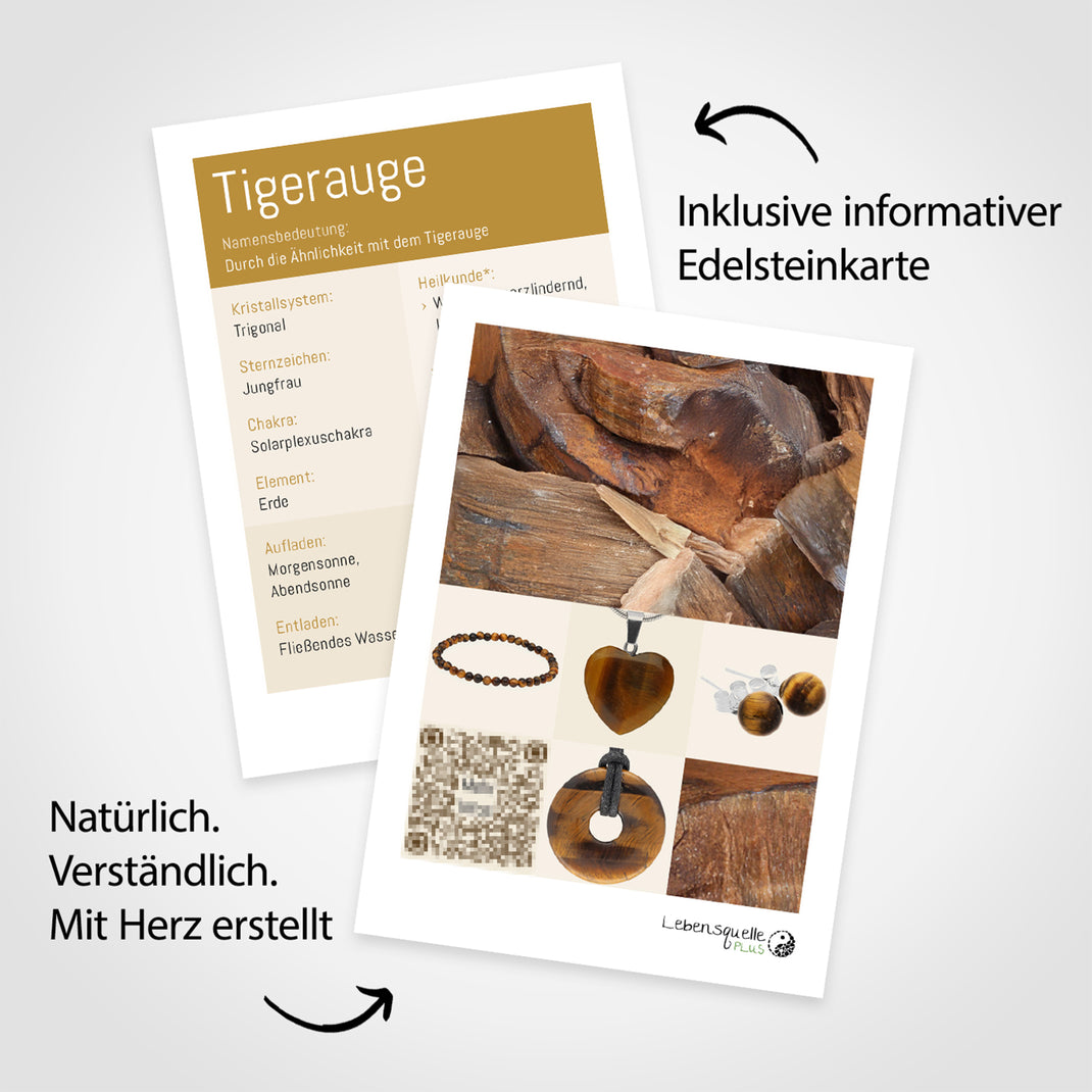 Natürliche Struktur und Glanz: Die glatte, polierte Oberfläche des Tigerauges bringt seine schimmernden Farbbänder besonders gut zur Geltung und fühlt sich angenehm in der Hand an.
