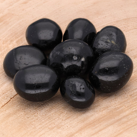 - Schwarzer Turmalin-Trommelstein: Dieser tiefschwarze Turmalin (Schörl) überzeugt durch seine markante rissige Struktur und glatt polierte Oberfläche, die ihn zu einem einzigartigen Handschmeichler macht.