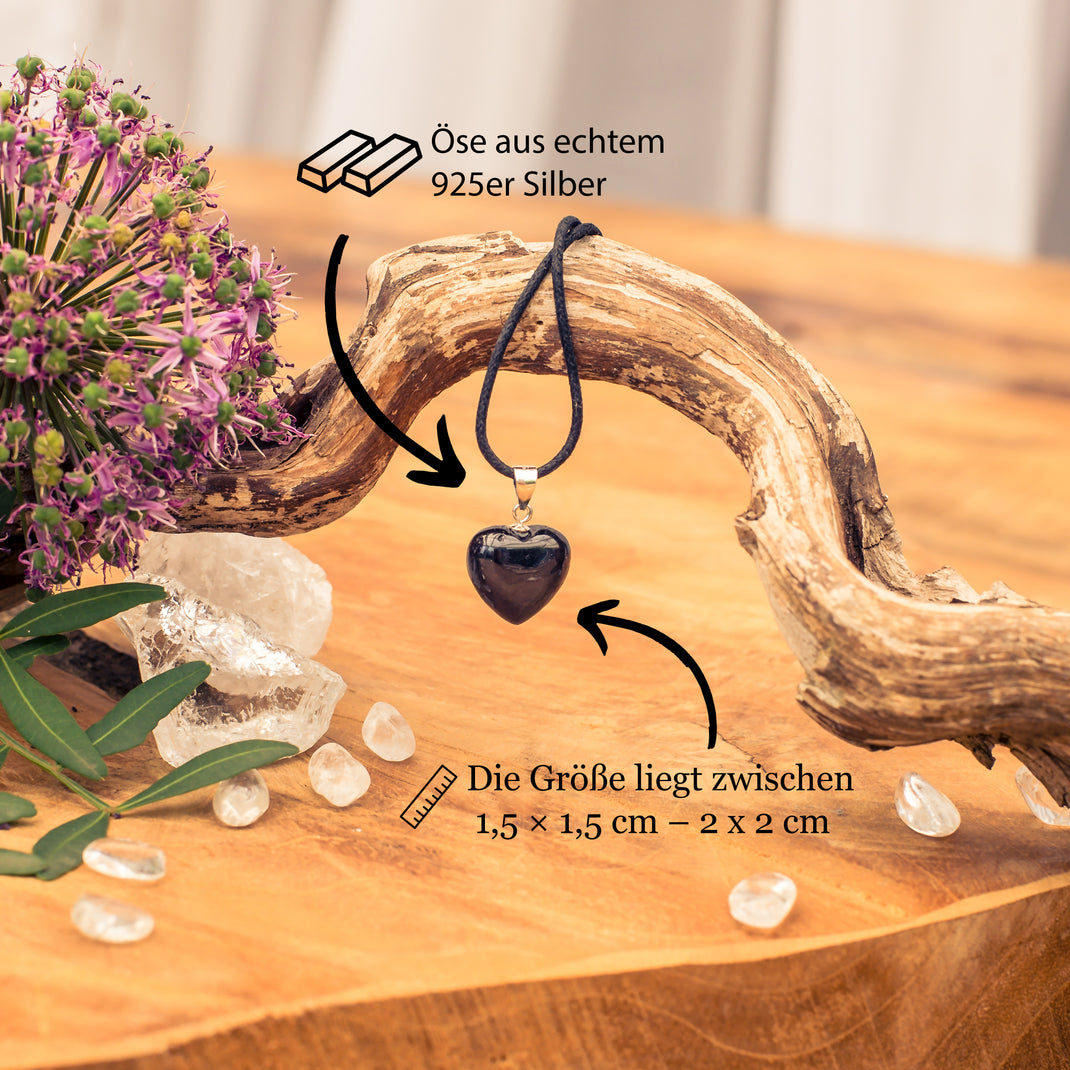 - Schöner Herzanhänger aus Turmalin (Schörl): Der Anhänger aus tiefschwarzem Turmalin (Schörl) beeindruckt durch seine geheimnisvolle Farbgebung und seine kompakte Größe von 2,0x2,0 cm.
