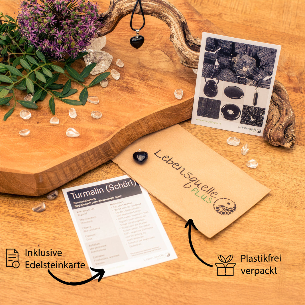 - Inklusive Edelsteinkarte mit Details: Eine liebevoll gestaltete Edelsteinkarte begleitet den Anhänger und informiert über die besonderen Eigenschaften und die Symbolik des Turmalins (Schörl).