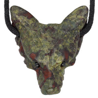 - Markantes Farbspiel – Der Wolfskopfanhänger aus Drachenblut-Jaspis besticht durch seine einzigartige Mischung aus tiefem Grün und rötlichen Akzenten.